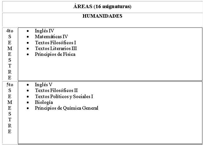 En lo que concierne a las tres Áreas de Humanidades, contienen 16 asignaturas que le brindan al estudiante la oportunidad de aproximarse hacia la disciplina que su inclinación vocacional le indique.
